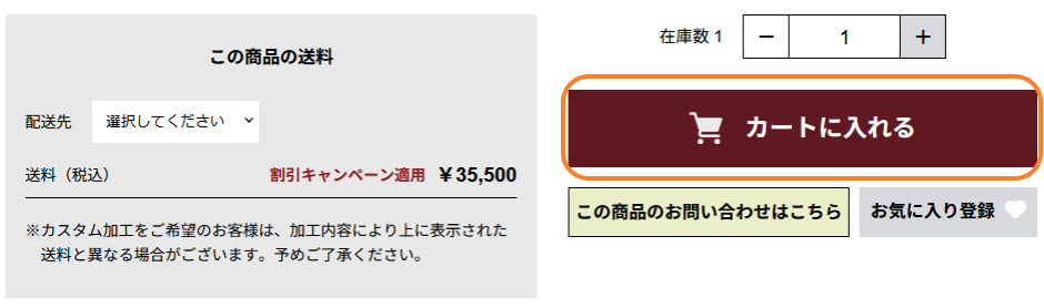 商品ページの 「カートに入れる」ボタンをクリックすると、カート内の確認画面へ遷移します。