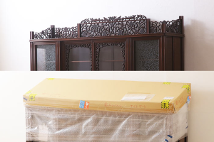「家財おまかせ便」の商品の場合、本来は配送業者に梱包をお任せしているのですが、繊細な部分は当店でも厳重に梱包。ダブルチェックでばっちり商品を守っています。