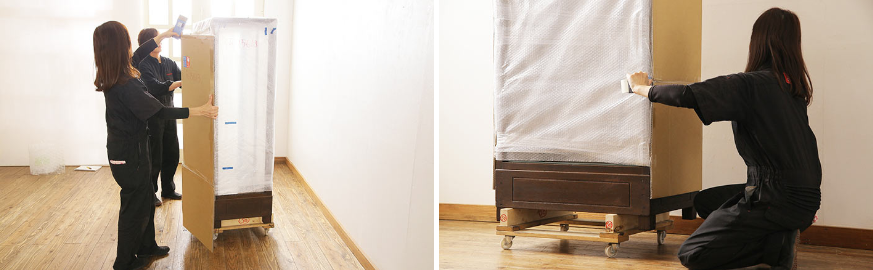 ラフジュ工房の商品梱包には、アンティーク家具屋だからこそのノウハウが詰め込まれています。
