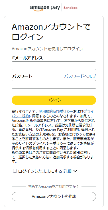 ボタンをクリックするとAmazonアカウントのログイン画面が表示されます。