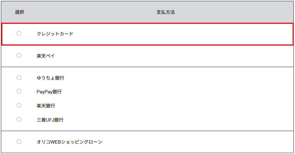 お支払い方法の選択欄で「クレジットカード」をご選択ください。