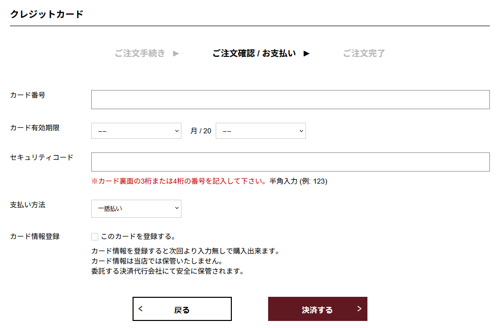 委託する決済代行会社にて安全に保管されますので、どうぞ安心してご利用くださいませ。