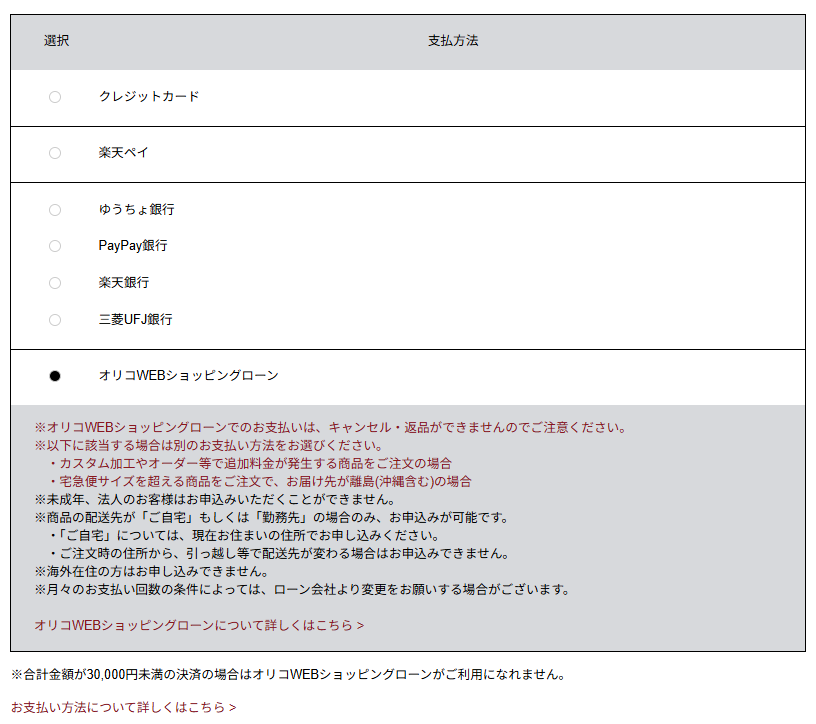 通常通り商品をご購入いただき、お支払い方法の選択画面で「ショッピングローン」をご選択ください。