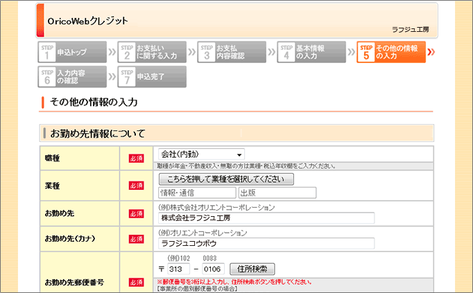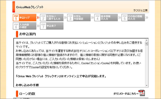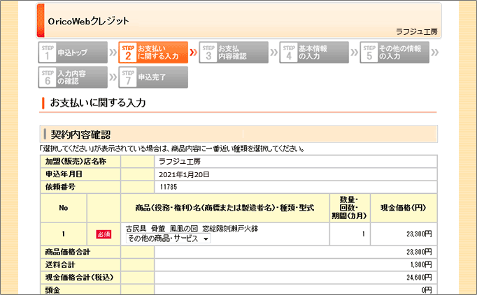 ご注文後、株式会社オリエントコーポレーション(以下オリコ)へクレジット契約の申し込みをする