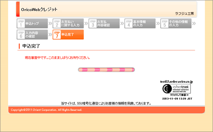 審査の画面に切り替わりますので、審査が終了するまでしばらくお持ちください。
