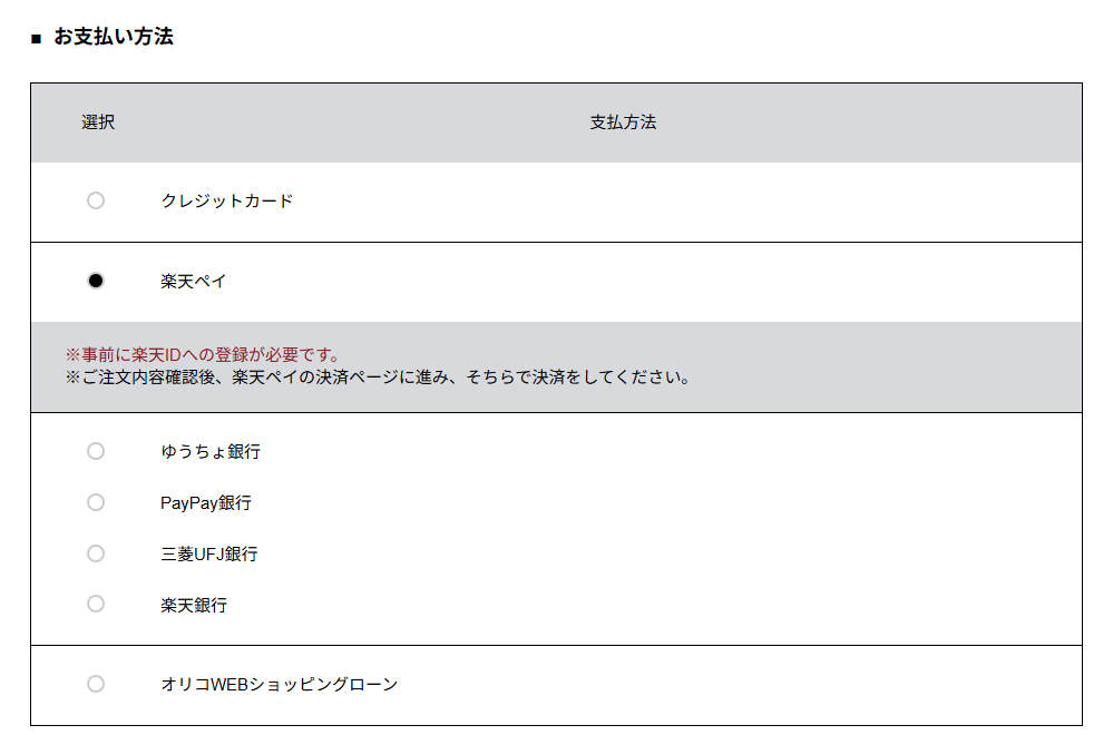 お支払い方法で「楽天ペイ」を選択してください。