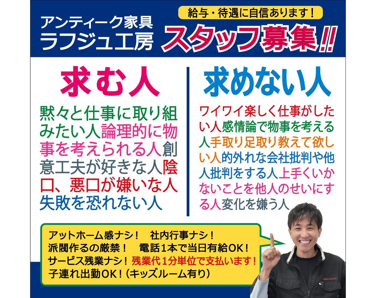 あなたのような人をラフジュ工房は求めています。
