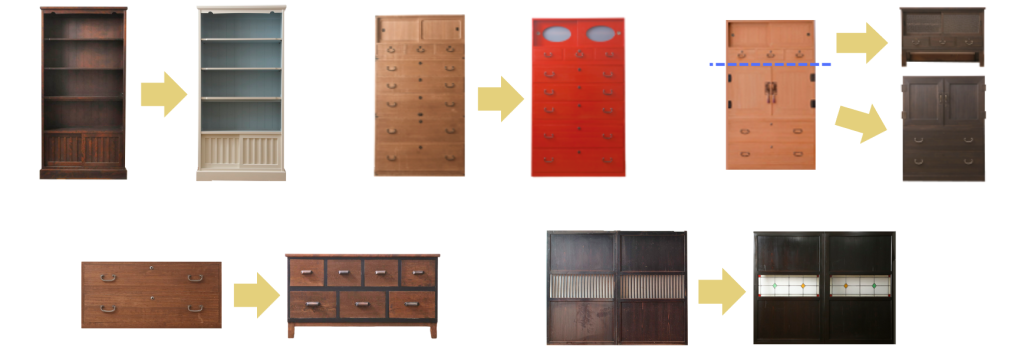 ラフジュ工房の家具・建具リメイクなら、あらゆる家具・建具をもう一度輝かせることができるんです!