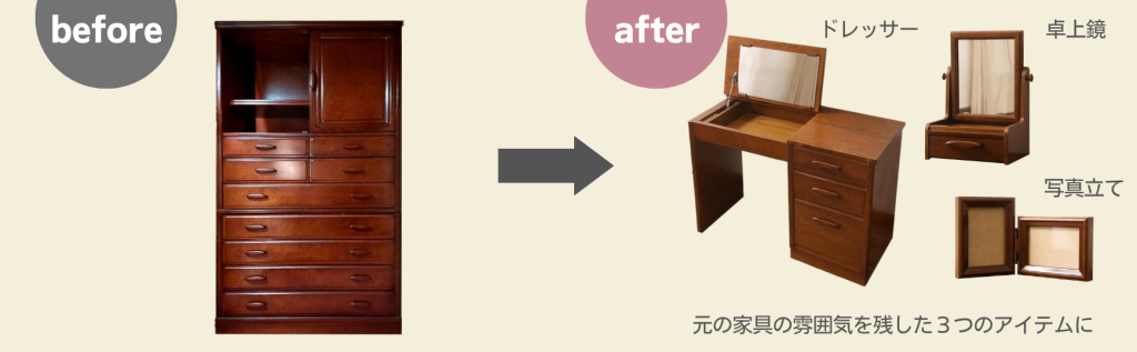 婚礼箪笥→ドレッサー、卓上鏡、写真立てにリメイク