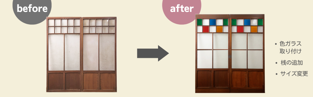 建具→色ガラスを入れて大正ロマン風にリメイク
