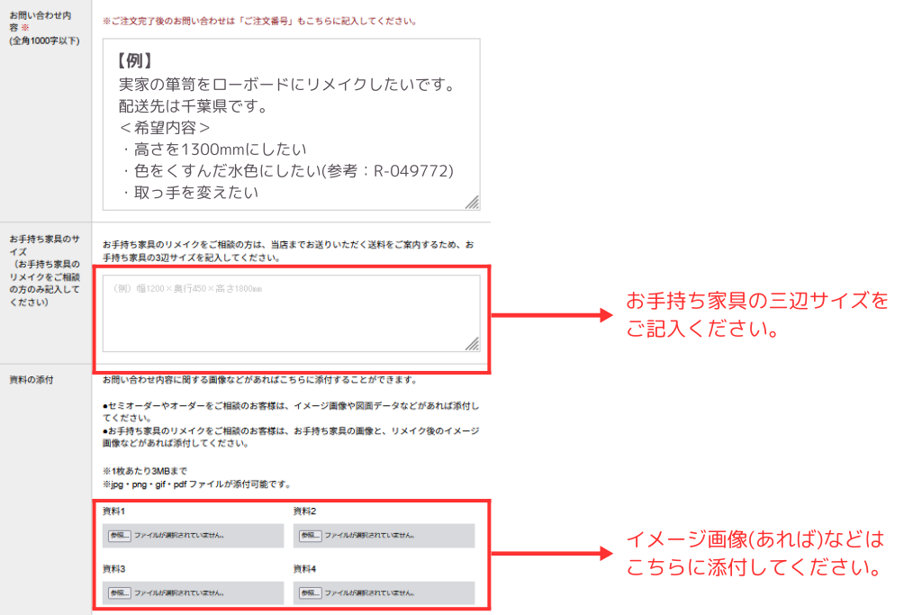 ※ 実際にリメイク作業へ入る前、ご依頼内容の最後の確認ポイントとなりますので、必ずご確認をお願いします。