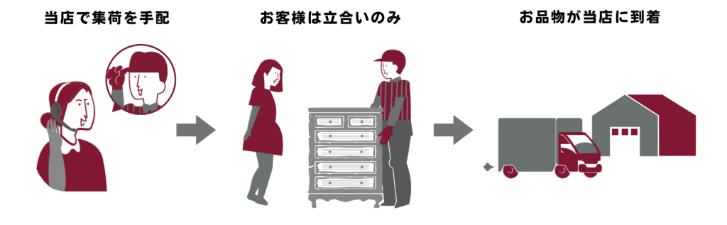 なお、梱包や運び出しは配送業者が行いますので、集荷当日はお立会いのみお願いします。