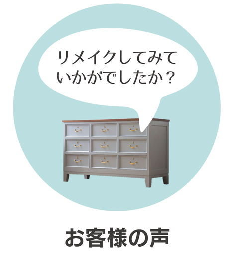こちらはラフジュ工房のお手持ちの家具リメイクをご利用いただいたお客様から、実際に寄せられた声です。