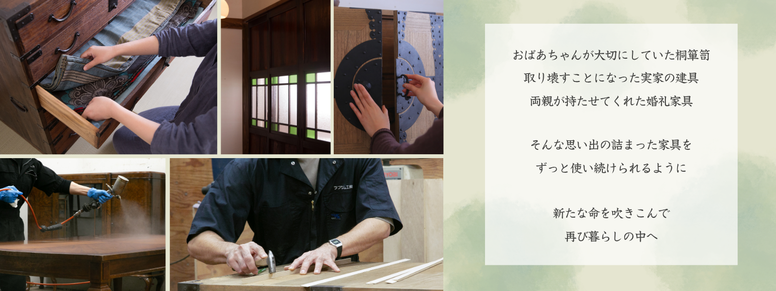 思い出の詰まった大切な家具・建具をお預かりするからには、お客様にもきちんとご納得いただいた上でお任せいただきたいと考えております。どうぞお気軽にお問い合わせください。