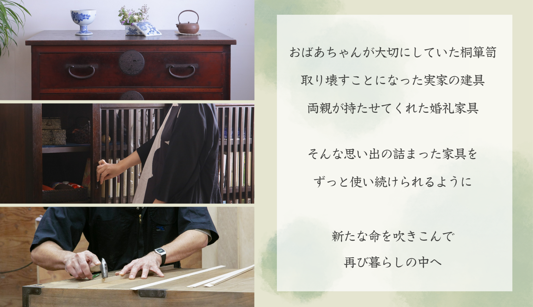 今まさに役目を終えようとしているその家具に、まだまだ現役で活躍してもらうために。