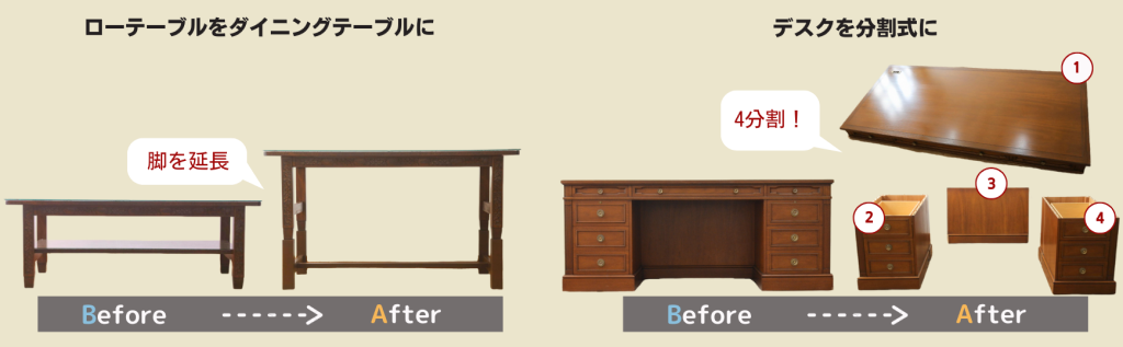 ラフジュ工房では、家具をただきれいにリペアするだけではなく、