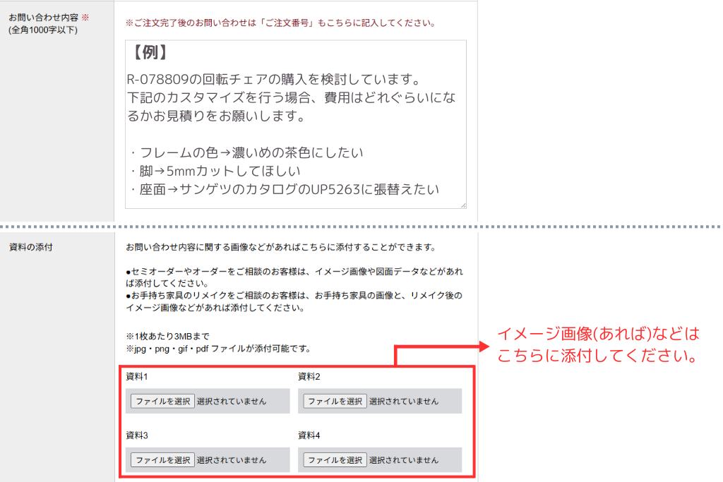 メールフォームからのお問い合わせは、以下例を参考にご要望の内容をご記入ください。