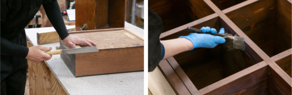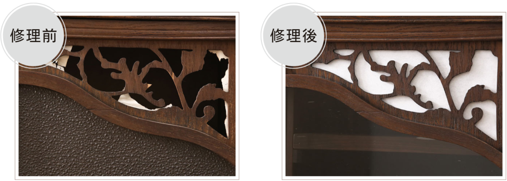 当店にお任せいただければ、「引き出しの開け閉めがしにくくなった」「ガタつきが気になる」「ガラスが割れてしまった」などなど、どんなお困り事も解決できます。