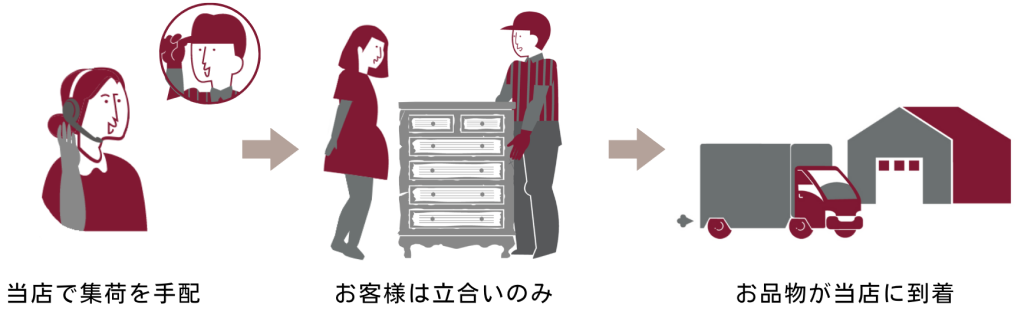 お客様のご都合の良い日時を伺い、当店にて家具の集荷を手配いたします。