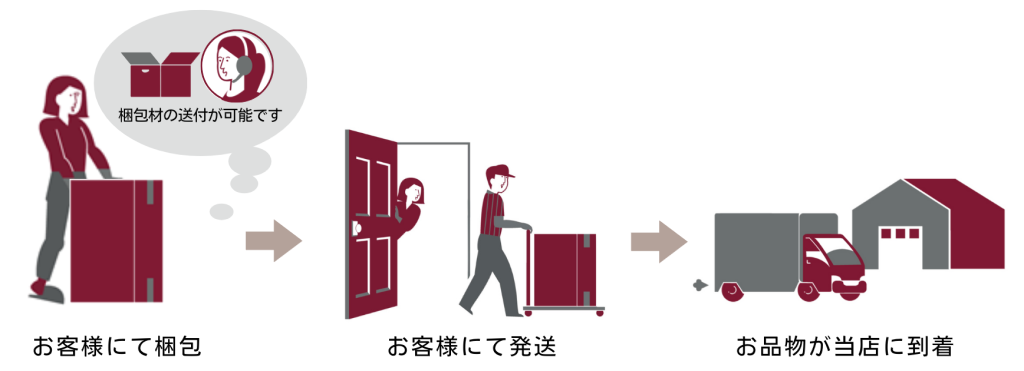 キズ等がつかないよう梱包いただき、宅配便にて当店までお送りください。