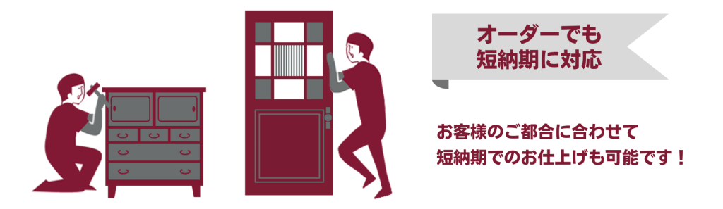 ほしい家具がリペア前の商品だったり、オーダー家具や再現製作のように一から作るものだったとしても、 「きっと期限までには届かないよな」と諦めてしまう前に一度ご相談ください。