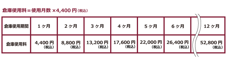 ● お品物の当店到着日を含む保管終了日までの倉庫使用料