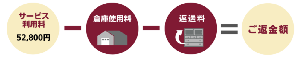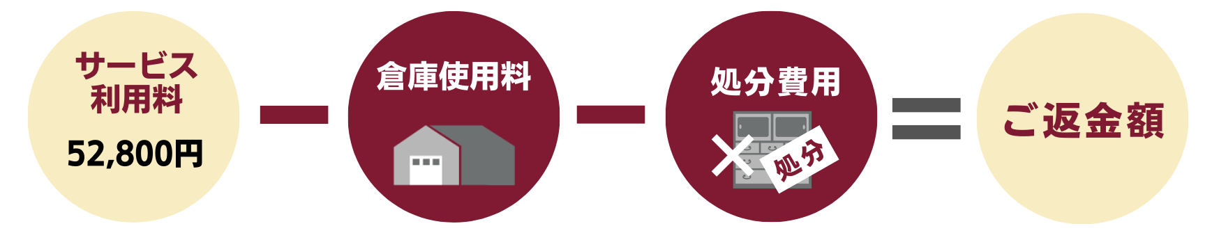 なお、お支払い済みのサービス利用料(52,800円(税込) )については、この場合“倉庫使用料”として消化させていただく形になります。