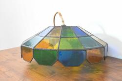 《引っ掛けシーリング式ペンダントライト加工費込み》 中古 希少!! 作家物!! ステンドグラス芸術家 伊藤誠二 ステンドグラスのペンダントライト(天井照明、吊り下げ照明、シェード、電笠)(定価約14万円)(R-084549)
