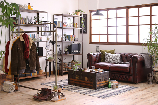 ヴィンテージスタイルのアンティーク家具は、主にアイアンや古材、レザーなどの古い無骨な質感が際立った家具のこと。経年変化によって生じたシャビーな味わいがおしゃれな表情となって現れています。