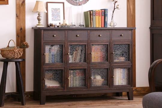 数種類のレトロガラスを組み合わせることで華やかさも増しますし、目的に応じてガラス扉の種類を選び分けてものを入れることも可能です。興味がある方は、ぜひこんな複合タイプのレトロな棚もチェックしてみてくださいね。