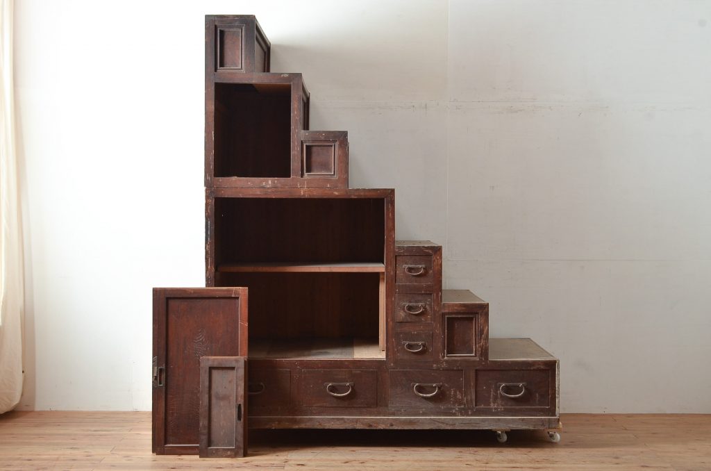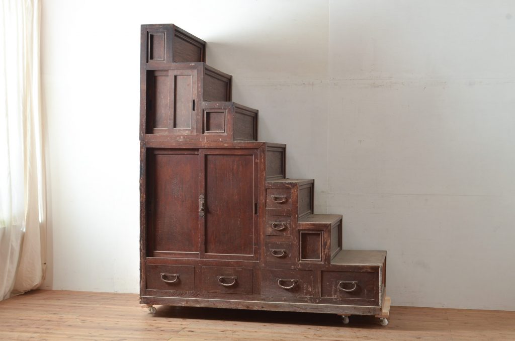 確かに、今世の中で見たり購入することが出来る階段箪笥は3段か4段の階段の「形」をした物がほぼ全てです。