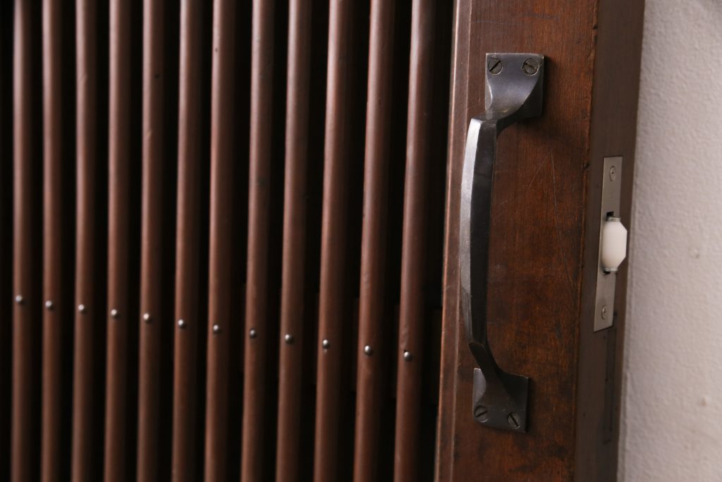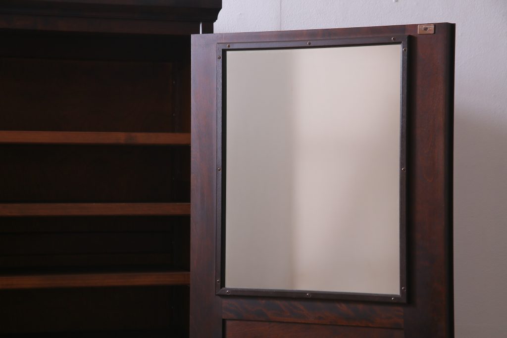 マイナスネジでアンティーク感をしっかりと残しながら、側面には新しく扉としての留め具が取り付けられています。