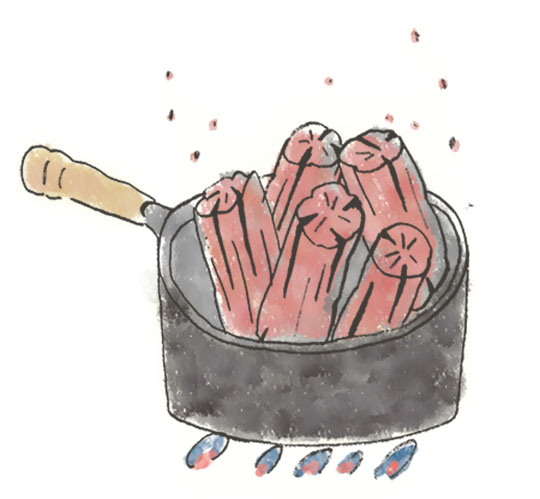 くぬぎ炭は断面に菊の花のような断面があり、その美しさから茶会用の炭として用いられることが多い炭です。なら炭は比較的お手頃な値段で手に入りやすく、業務用の炭としては最も広く普及されています。