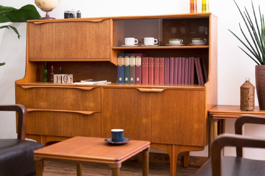 ミッドセンチュリーなリビングのサイドボードに
