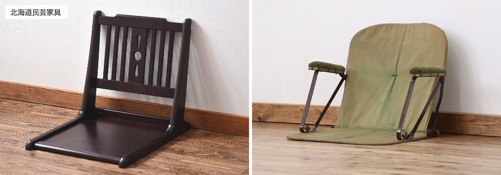 あまり見かけない珍しいタイプですが、折りたたむとスマートに収納できるので、急な来客時などに役立つアイテムです。民芸家具の品は高級感もあって目を引きます。