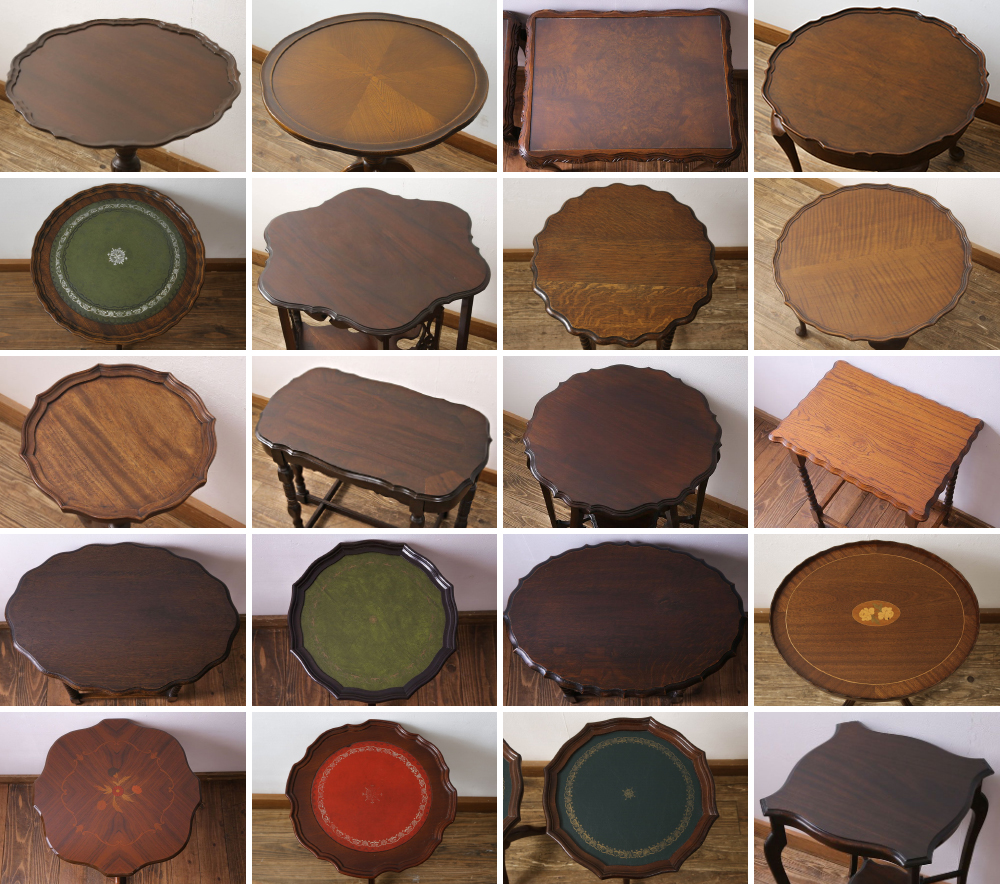 パイクラストとはアンティークテーブルの天板に施される彫り装飾のことで、「パイクラスト=パイの皮」の名の如く天板の縁がまるでパイ生地のような波形をしています。中でもよくイギリスやフランスのアンティークテーブルに取り入れられ、現代においては頻繁には出会えない貴重な天板デザインです。