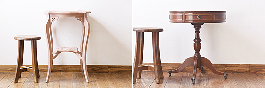 また万が一花台として使わなくなっても、座ったりサイドテーブルに使ったりと他の用途に転用しやすく、さらにアンティーク家具の中では比較的お手頃な価格なので、アンティークの花台の中でも挑戦のしやすさはピカイチ。とりあえず花台を取り入れてみたいという花台ビギナーさんにもおすすめのアンティーク家具です。