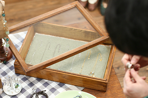現代ではこういう風にお気に入りのアクセサリーを並べるだけで、180度違う印象に。雑貨屋さんなどのディスプレイ什器としても活用できそうですね。