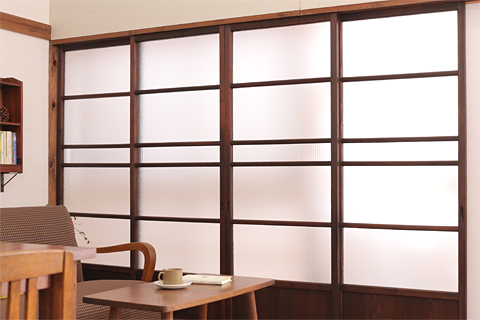 格子子が細かいと、視線を遮る効果が高まります。暗いほうから明るいほうは見えますが、明るいほうからは暗いほうが見えにくい、つまり、中から外はよく見え、外から中は見えにくいという防犯機能を備えた格子戸です。