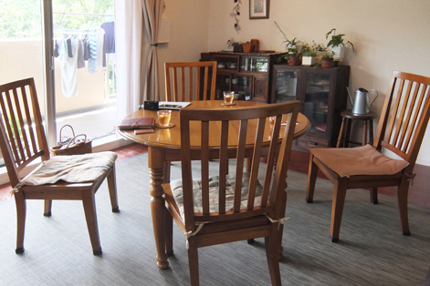 こちらに持ち帰ってからは、日本の生活に合わせて、テーブルと椅子の脚を専門店に頼んで切ってもらったそうです。