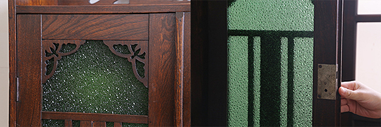 当店では、長年多くのアンティーク家具を見てきた経験を活かして、日本の古い家具や建具に合わせやすいオリジナルのデザインガラスを考案しました。