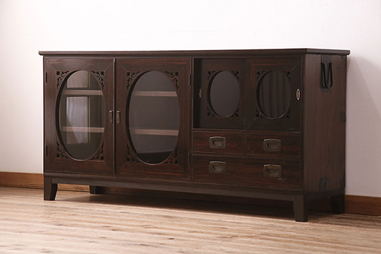 まずはこちらの大正ロマンな雰囲気漂う、丸窓がおしゃれなリビングボード。