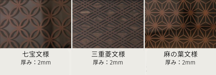 ┗オリジナル 組子入りガラス:七宝文様/三重菱文様/麻の葉文様