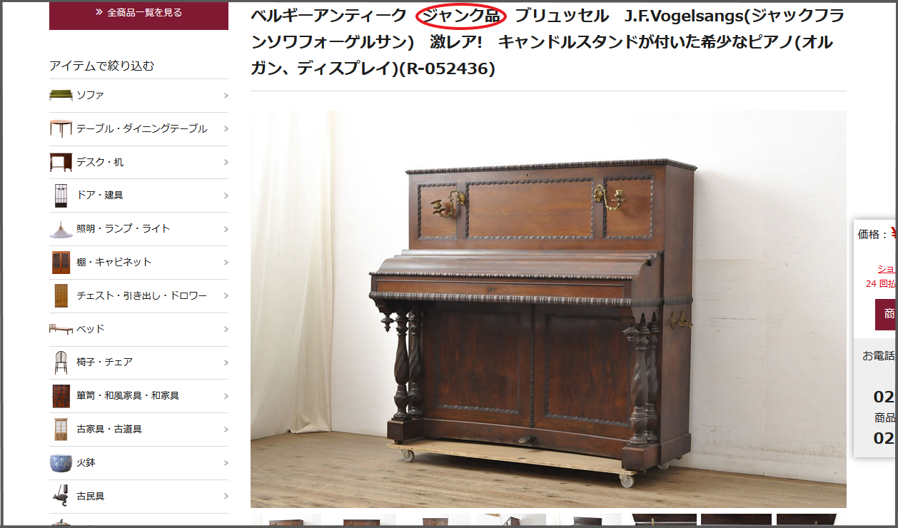 当店で言うところの「ジャンク品」「現状販売品」とは、ラフジュ工房では一切リペアやお掃除など行わないお品物のこと。