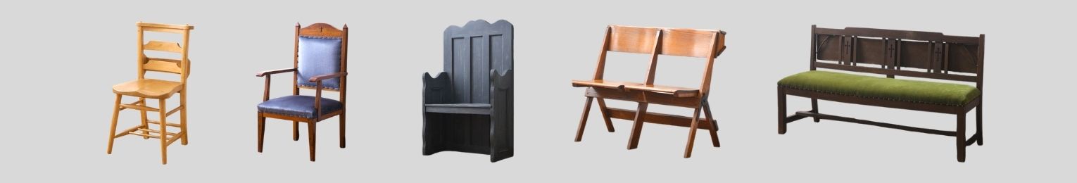 当店では、イギリスやフランスなど西洋のアンティークを中心に、幅広いチャーチチェアを取り揃えています。
