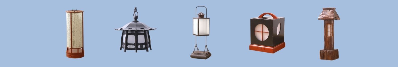 当店では、アンティーク・ヴィンテージの年代ものを中心に、様々な大きさ・形・デザインの灯籠・提灯・行灯を取り揃えています。