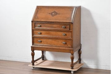 アンティークのビューローブックケースは、本棚兼デスクとして活躍する便利なアイテム。本で調べものをすることが多い方にぴったりのデスクです。見た目もゴージャスで存在感があり、雰囲気たっぷりのワークスペースづくりができます。