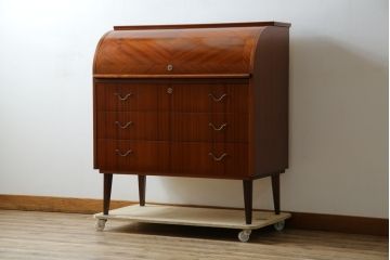 ロールトップデスクデスク天板に蛇腹巻上げ式のシャッターが付いたロールトップデスク。ヨーロッパアンティークや大正ロマンスタイルのデスクに多い。デスク上をすっぽりと隠せて便利!