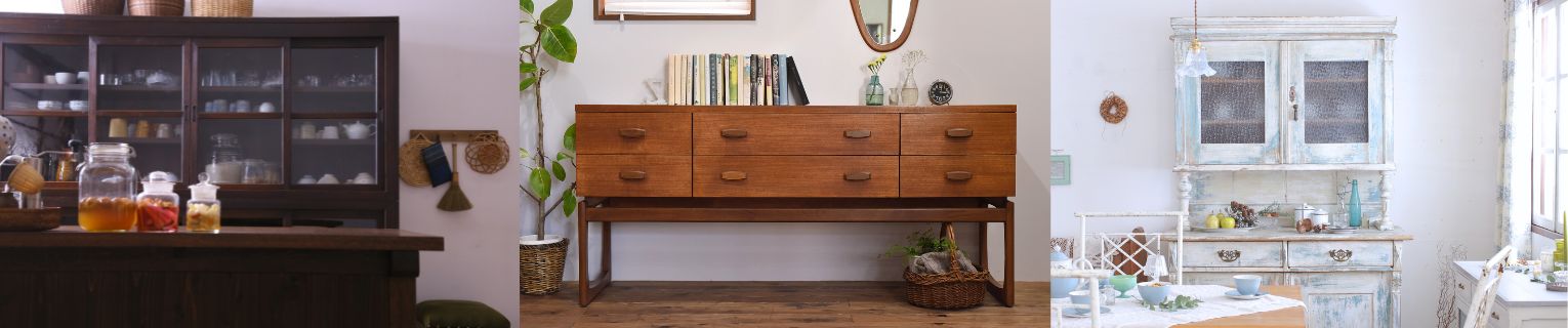 好みのものが見つかりやすい!和製・海外製・リメイク品まで様々に揃うアンティーク食器棚・カップボード