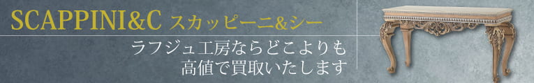 スカッピーニ&シーの家具は、これらが特に中古市場で人気がありますが、他のアイテムも工芸的に優れたものばかり。当店ならすべて高価買取が可能です!ぜひ、アイテムやシリーズにかかわらず、お気軽に買取を依頼いただければと思います。